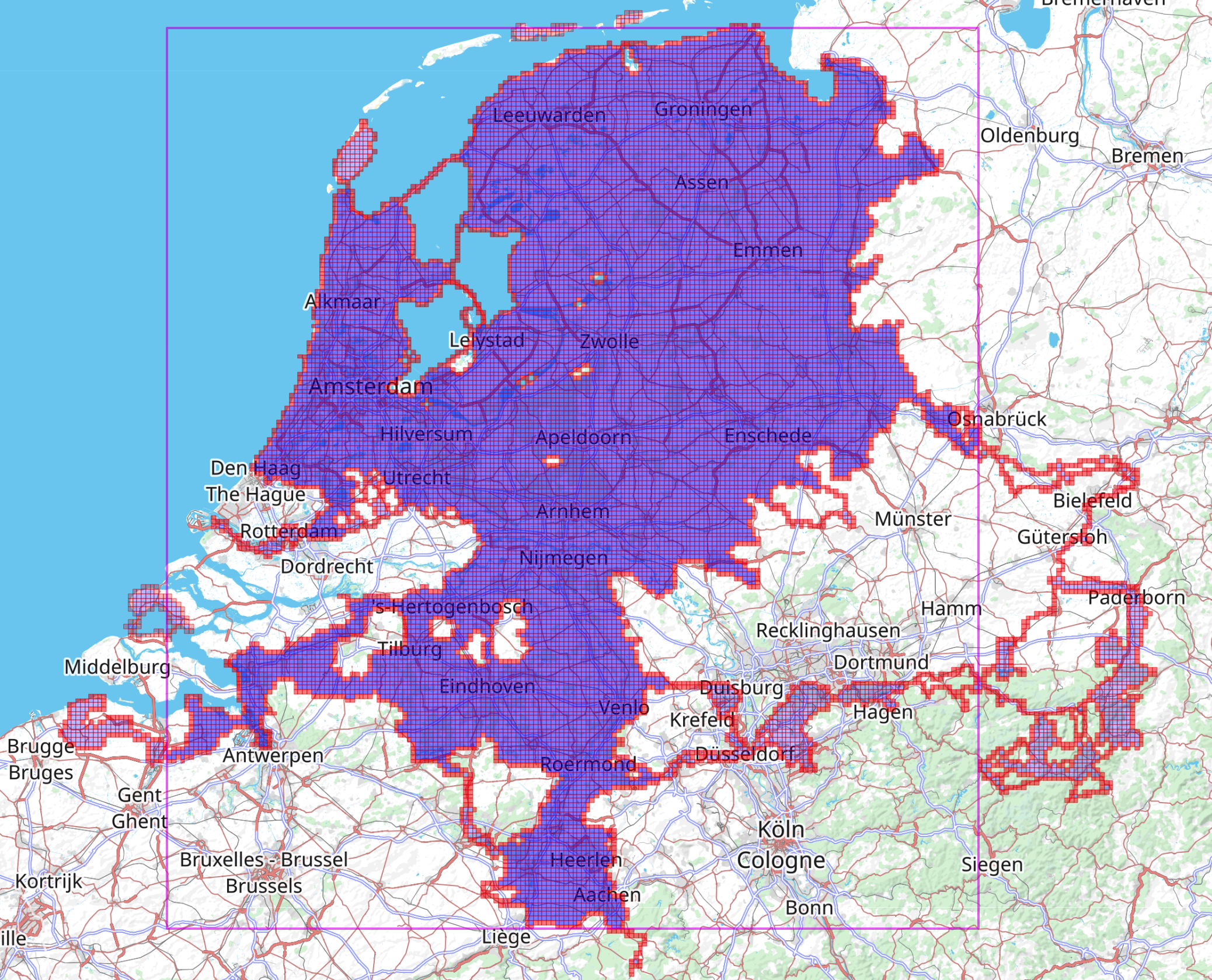 The entire world is overlaid by a 16,348 x 16,348 grid with each resulting square representing a VeloViewer Explorer Tile.  The tiles are based on Slippy Map Tilenames on the Web Mercator projection used by OpenStreetMap and Google Maps at a zoom level of 14.