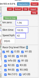 - A CSV file with waymarkers along with expected arrival times for three given speeds for use in the race schedule.